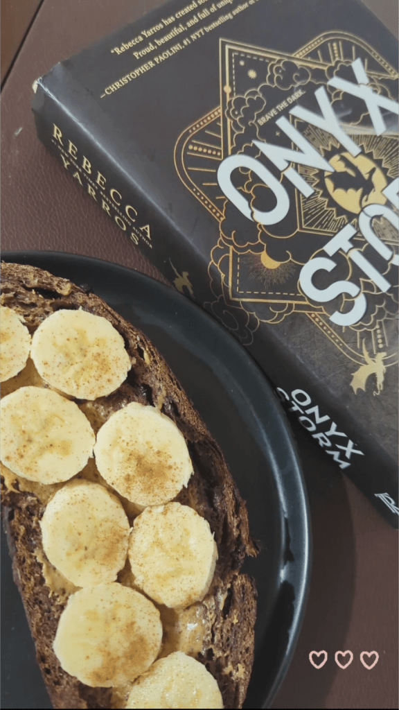 • A chapter of a cozy book (I’m currently reading Onyx Storm by Rebecca Yarrows)